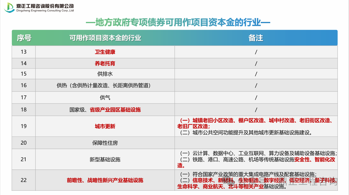 (2)資金投向:精準(zhǔn)匹配專項(xiàng)債券可用作項(xiàng)目資本金的行業(yè),或項(xiàng)目未納入“負(fù)面清單”。