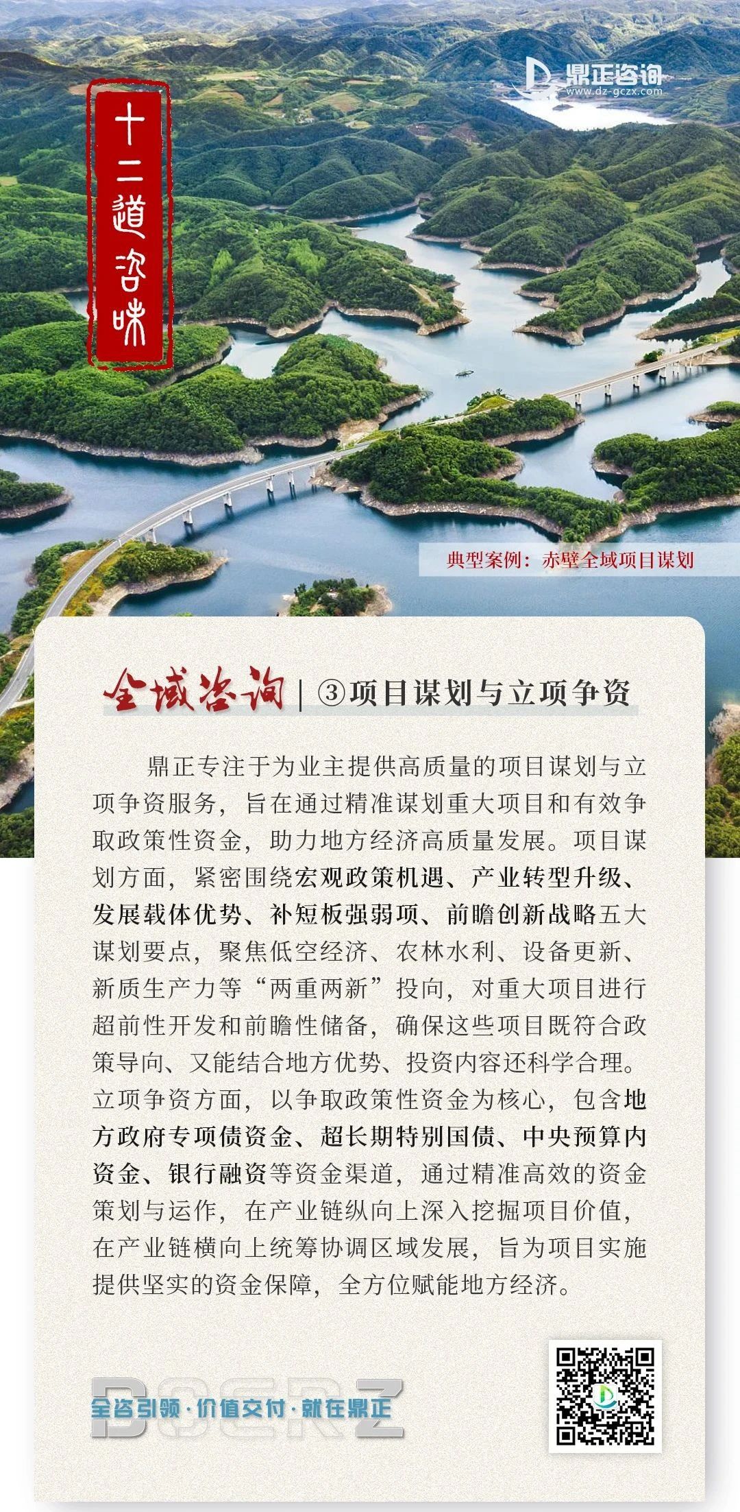 鼎正專注于為地方政府提供全方位咨詢服務(wù),憑借深厚的專業(yè)知識和豐富的實(shí)踐經(jīng)驗(yàn),我們已成功助力多個(gè)地方政府申報(bào)專項(xiàng)債、超長期特別國債、中央預(yù)算內(nèi)資金等項(xiàng)目,累計(jì)申報(bào)288個(gè)項(xiàng)目,投資額超260億元,成功爭取資金超90億元。
