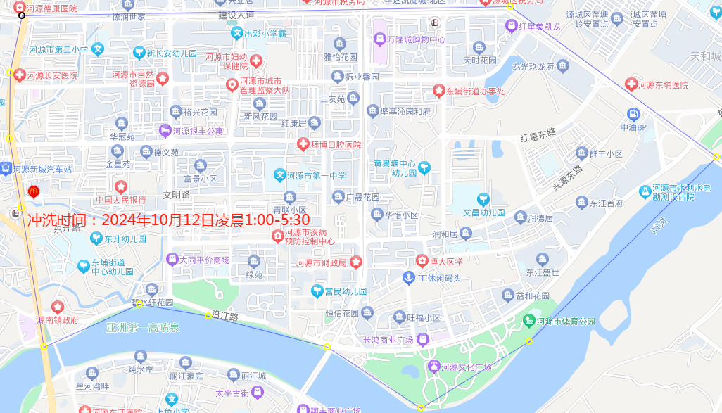 一、河源大道北以西麗日廣場至東源高速出口區(qū)域供水管道沖洗