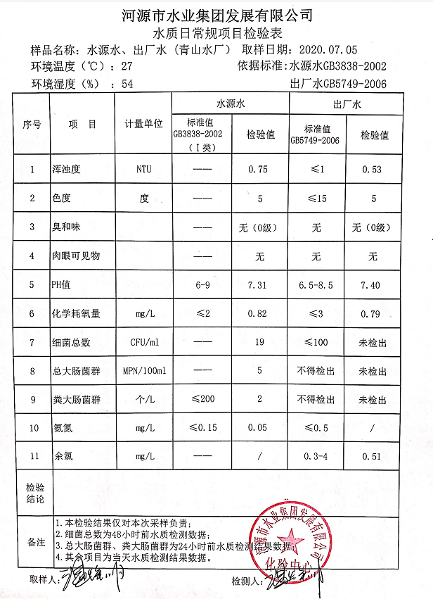 2020年7月5日水質(zhì)檢驗(yàn)報(bào)告