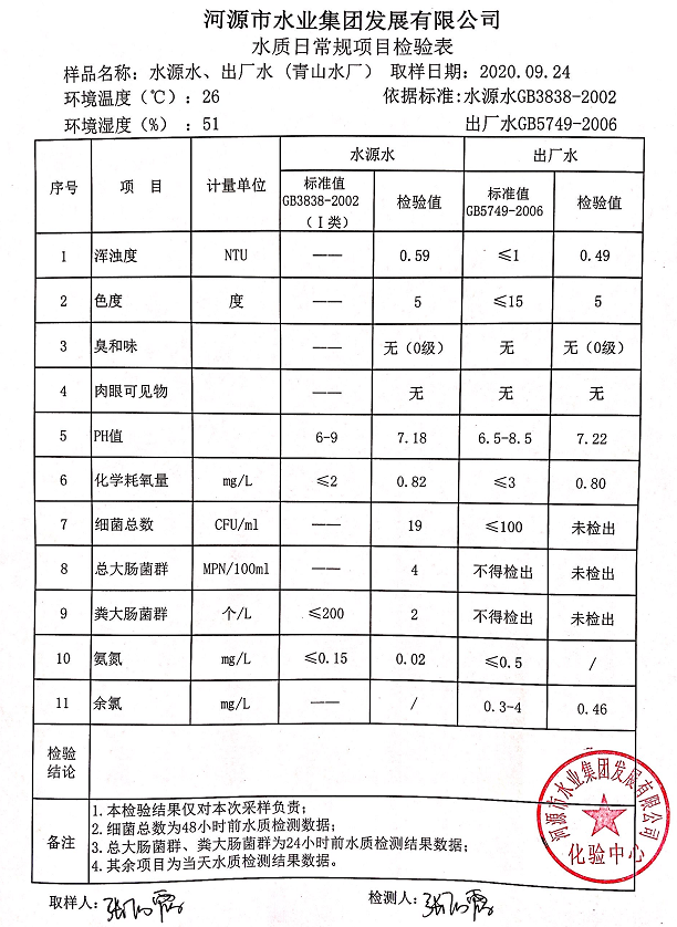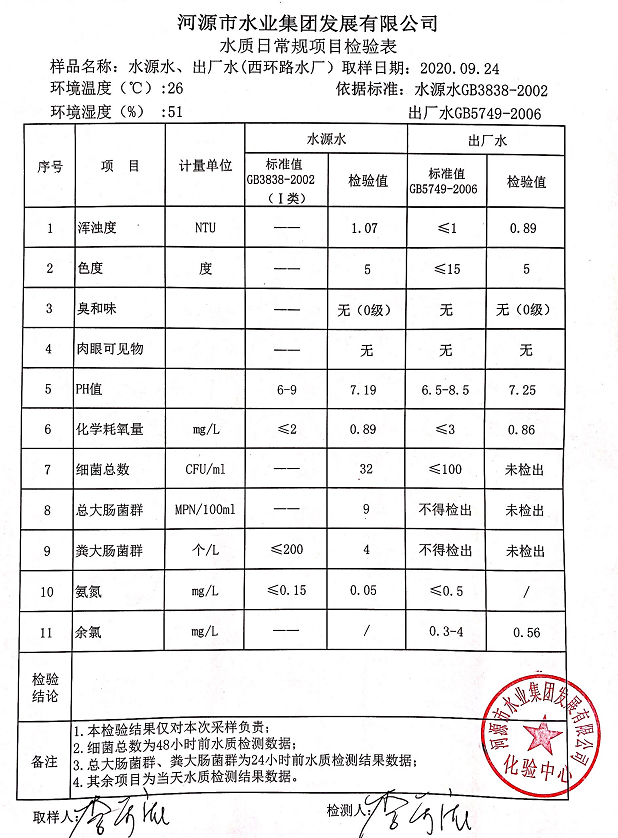 2020年9月24日水質(zhì)檢驗報告