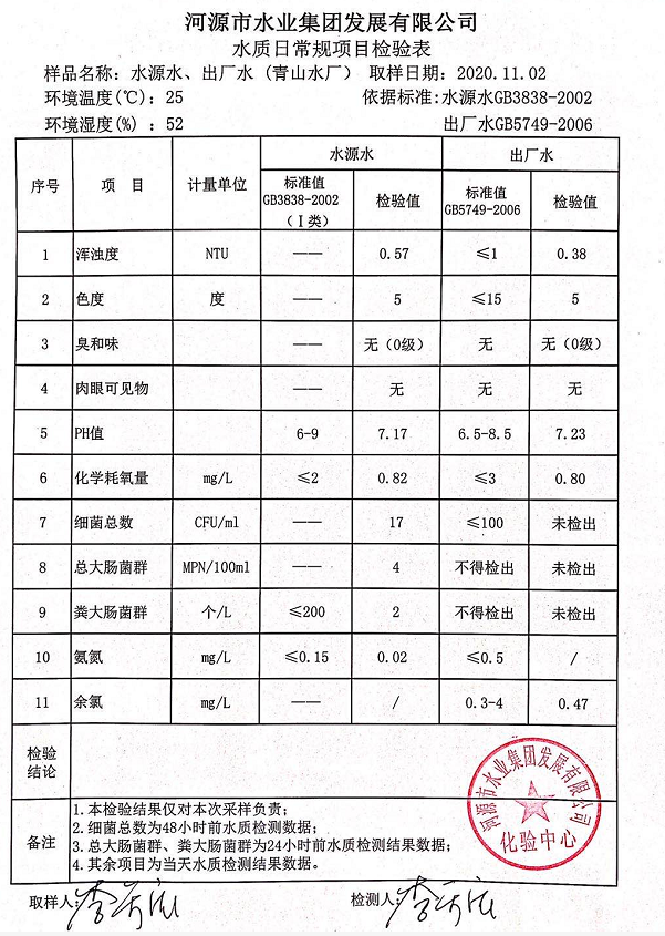 2020年11月2日水質(zhì)檢驗(yàn)報(bào)告