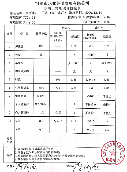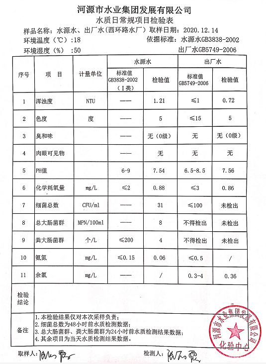 2020年12月14日水質檢驗報告