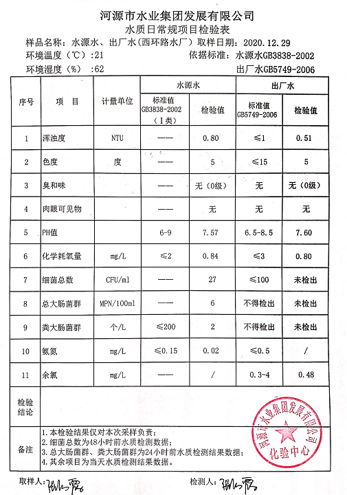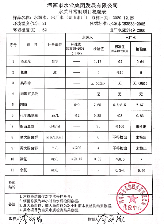 2020年12月29日水質(zhì)檢驗(yàn)報(bào)告