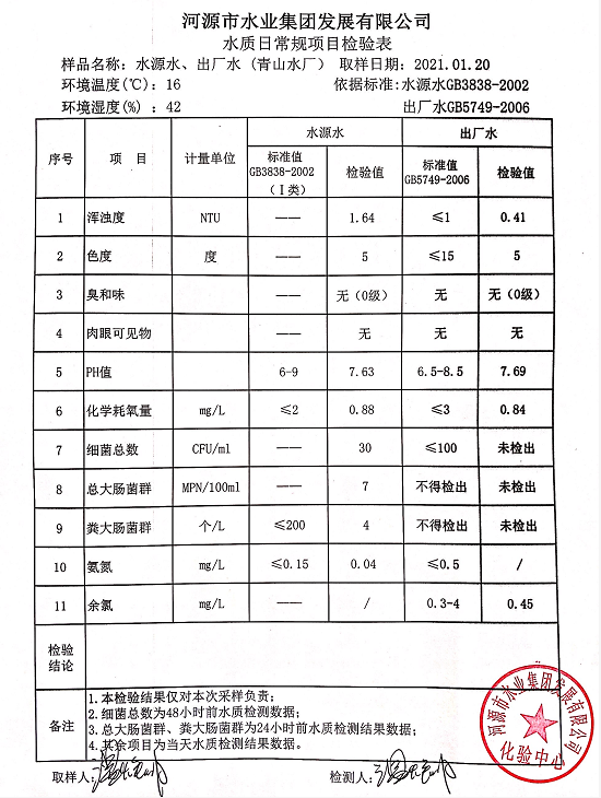 2021年1月20日水質(zhì)檢驗(yàn)報(bào)告