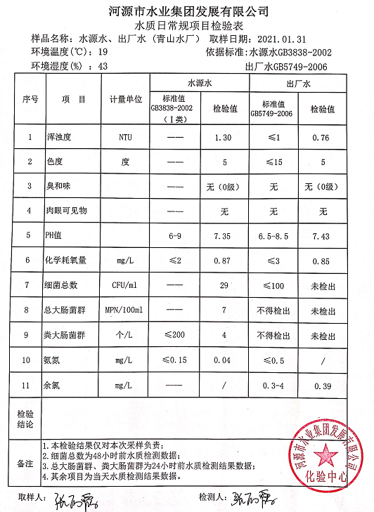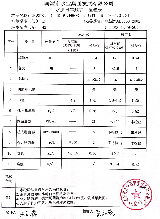 2021年1月31日水質(zhì)檢驗(yàn)報(bào)告