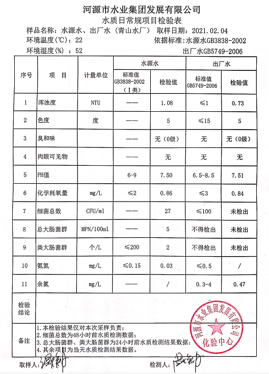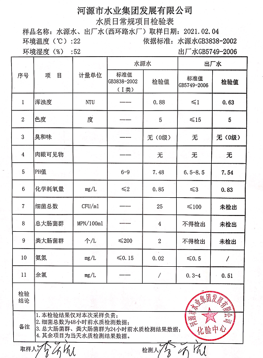 2021年2月4日水質(zhì)檢驗(yàn)報(bào)告