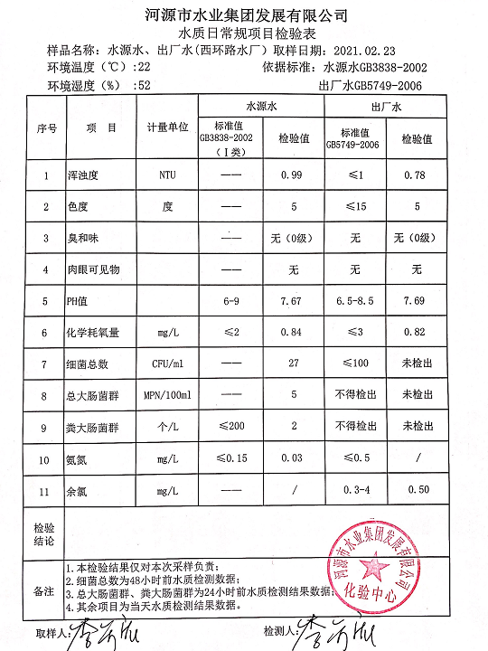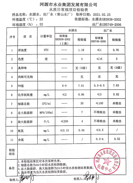 2021年2月23日水質(zhì)檢驗(yàn)報(bào)告