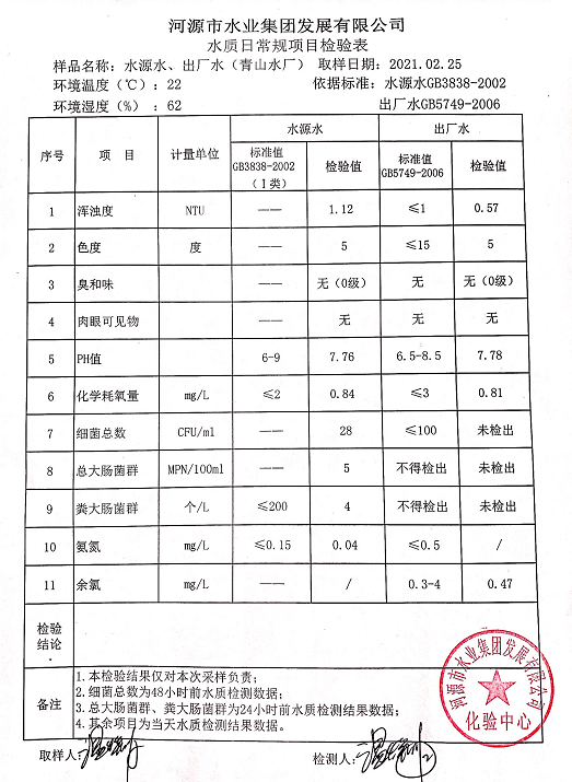 2021年2月25日水質(zhì)檢驗(yàn)報(bào)告