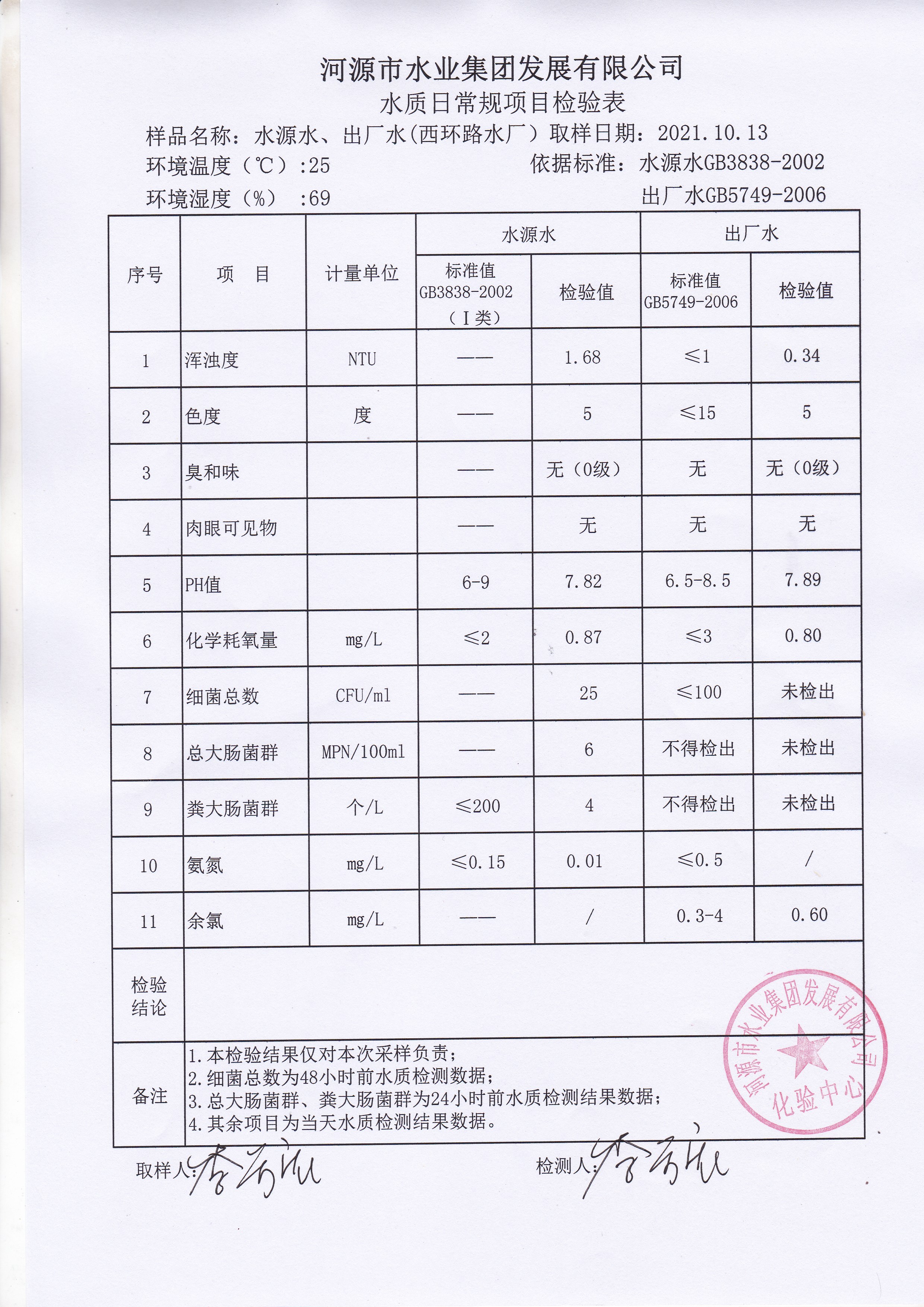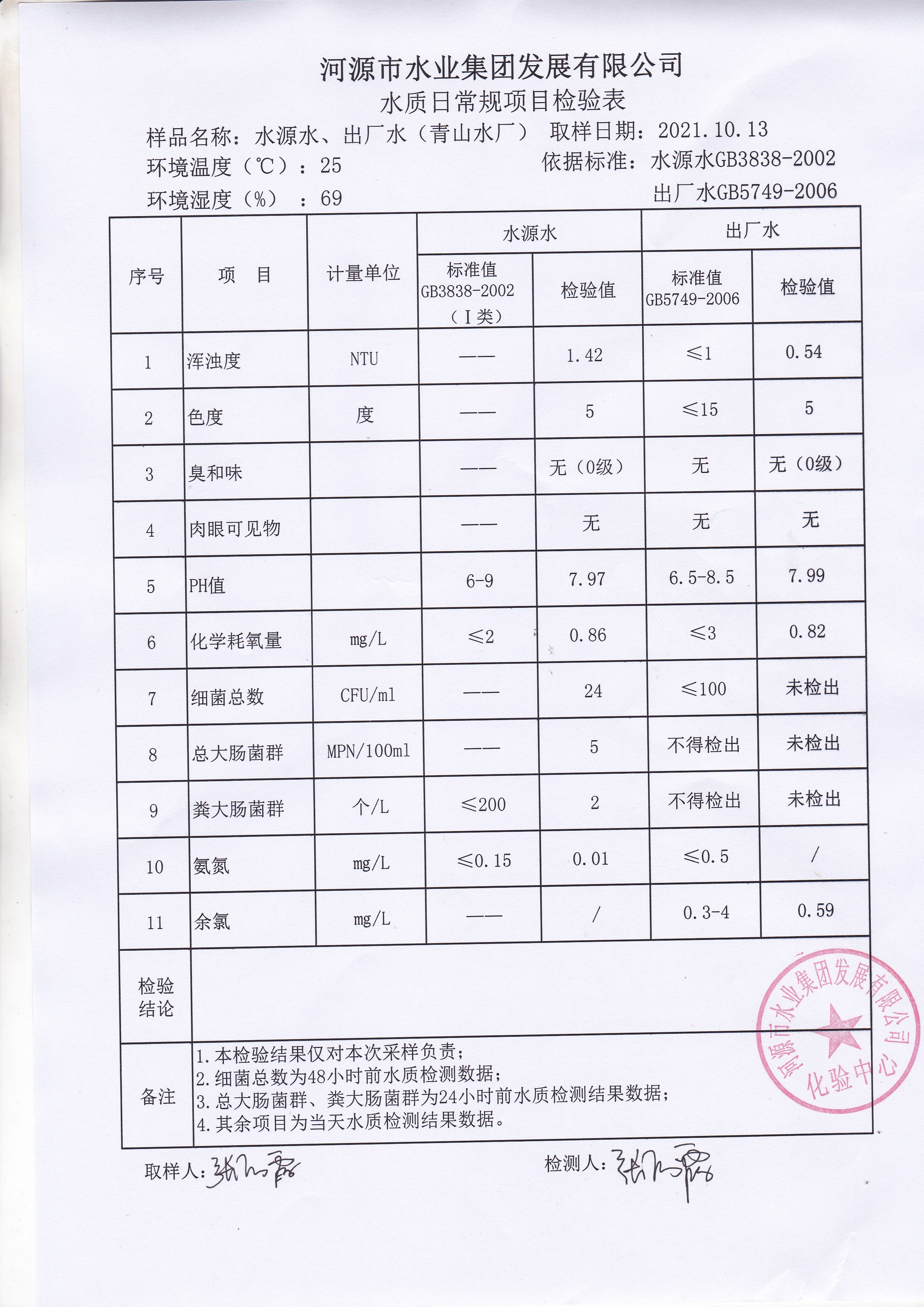 2021年10月13日水質(zhì)檢驗(yàn)報(bào)告