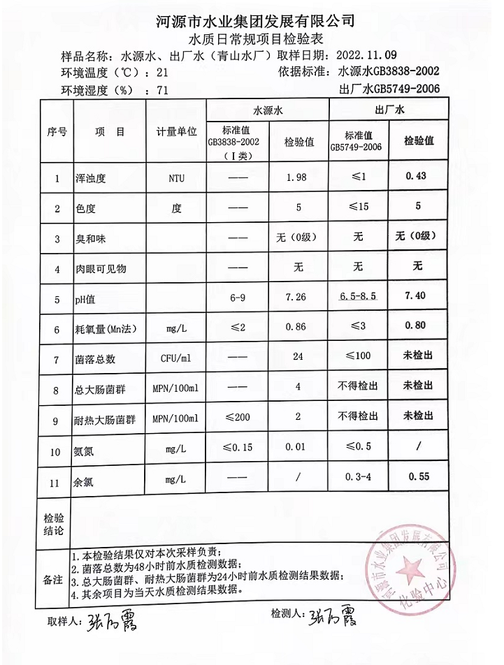 2022年11月9日水質(zhì)檢驗報告