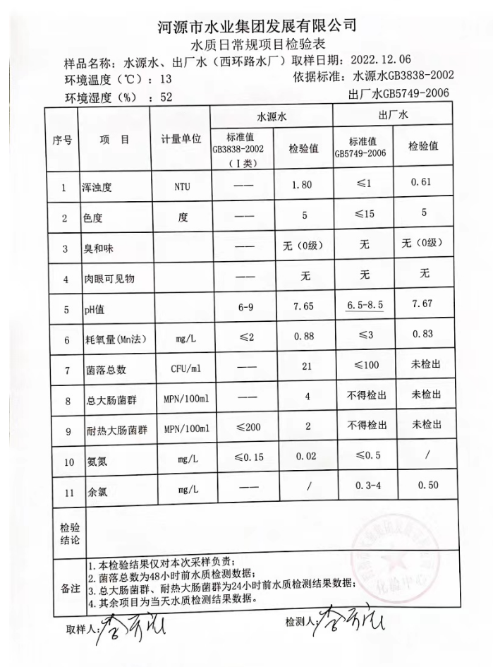 2022年12月6日水質(zhì)檢驗(yàn)報(bào)告