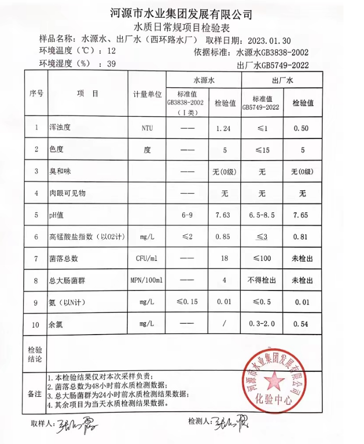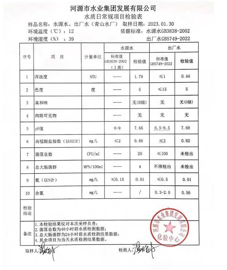 2023年1月30日水質(zhì)檢驗(yàn)報(bào)告