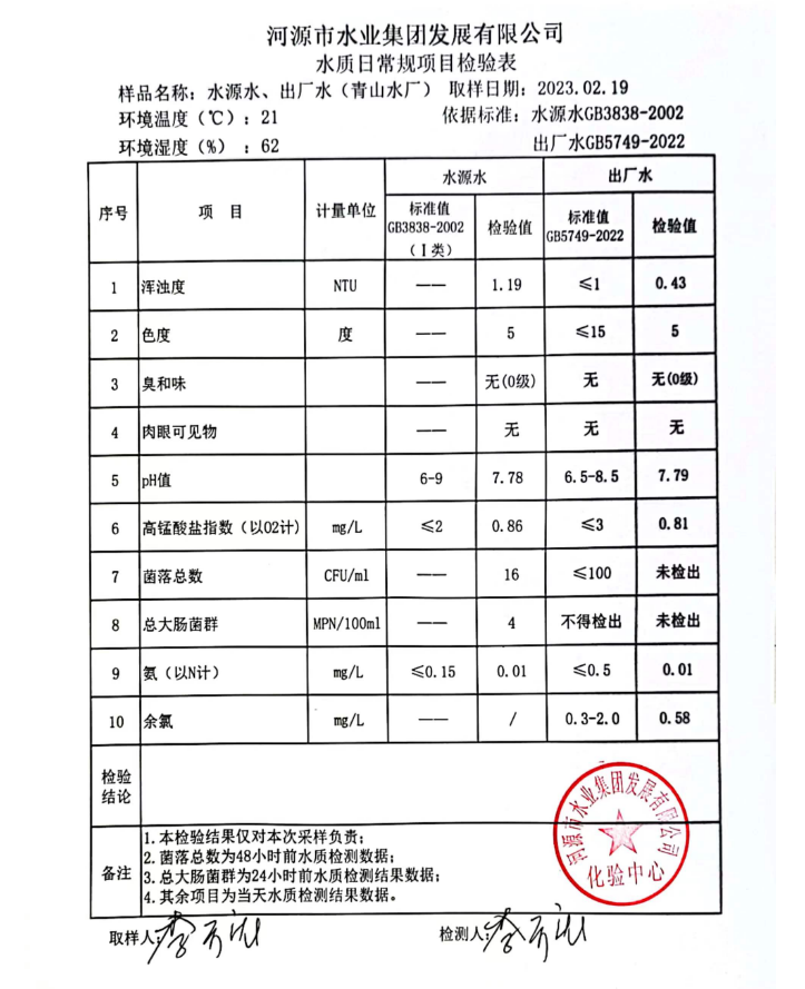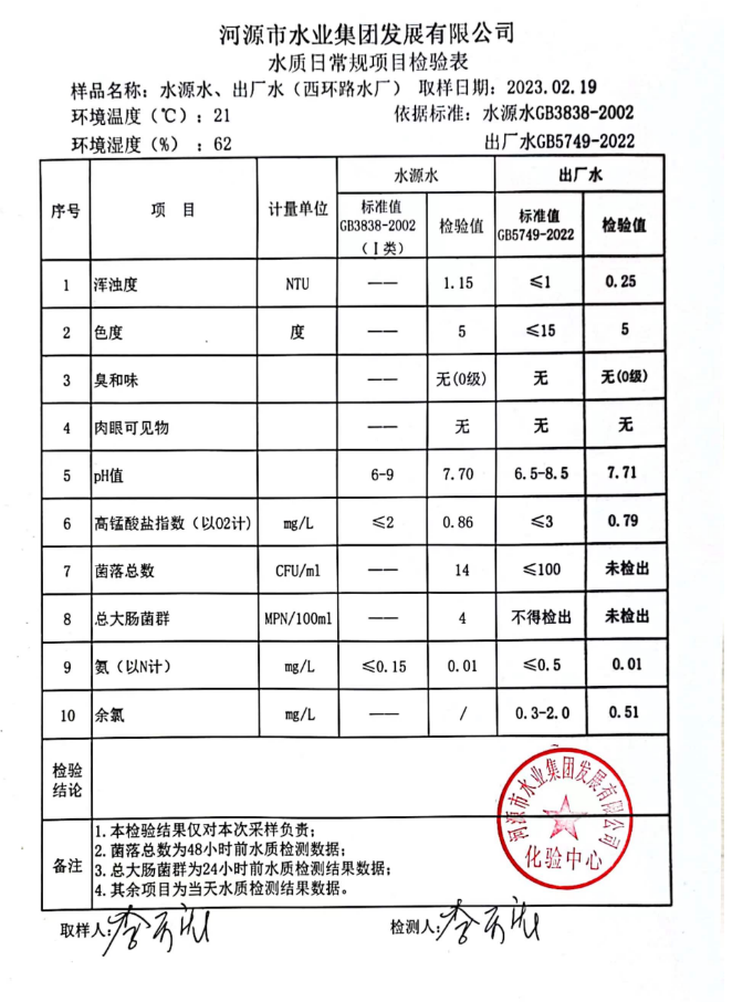 2023年2月19日水質(zhì)檢驗(yàn)報(bào)告