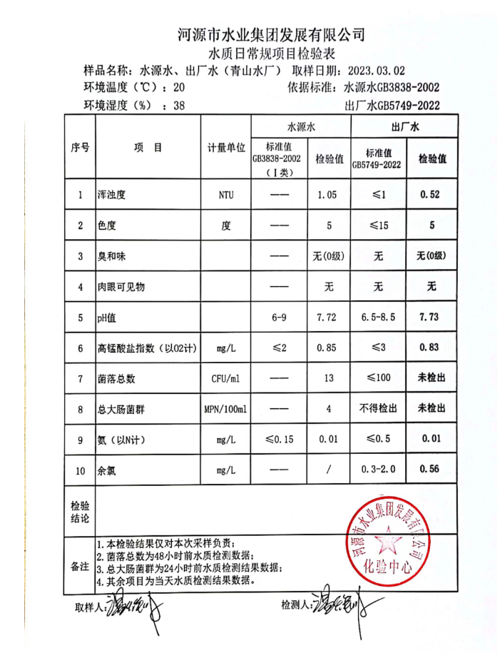 2023年3月2日水質(zhì)檢驗(yàn)報(bào)告