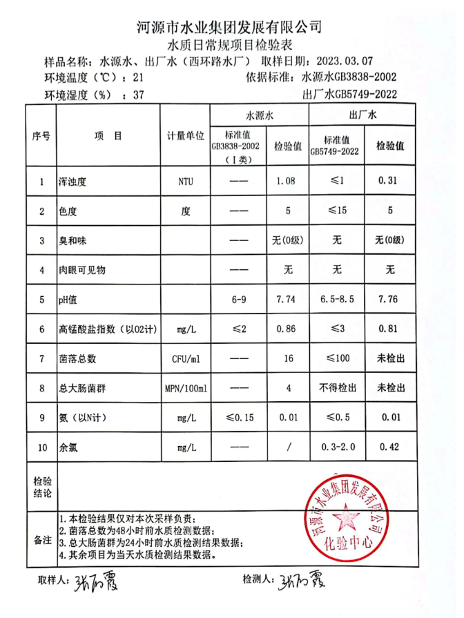 2023年3月7日水質(zhì)檢驗(yàn)報(bào)告