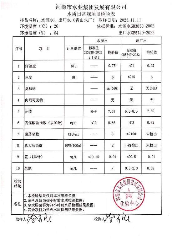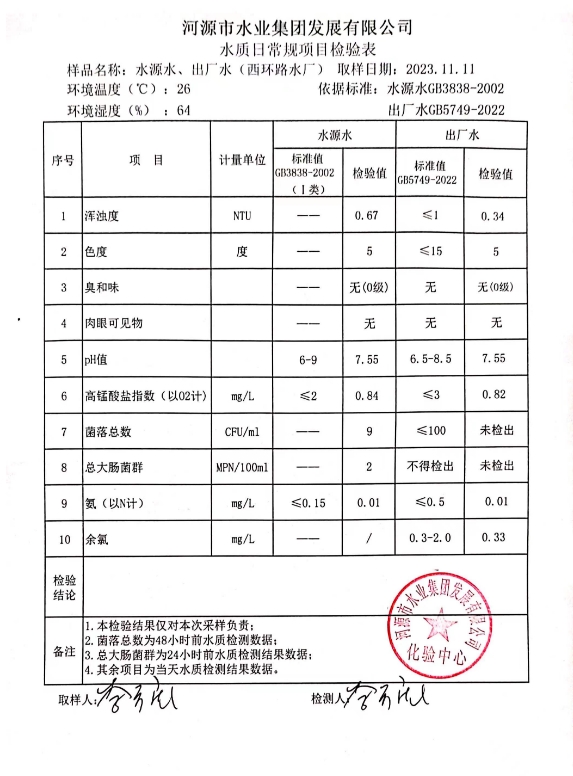 2023年11月11日水質(zhì)檢驗報告 ???