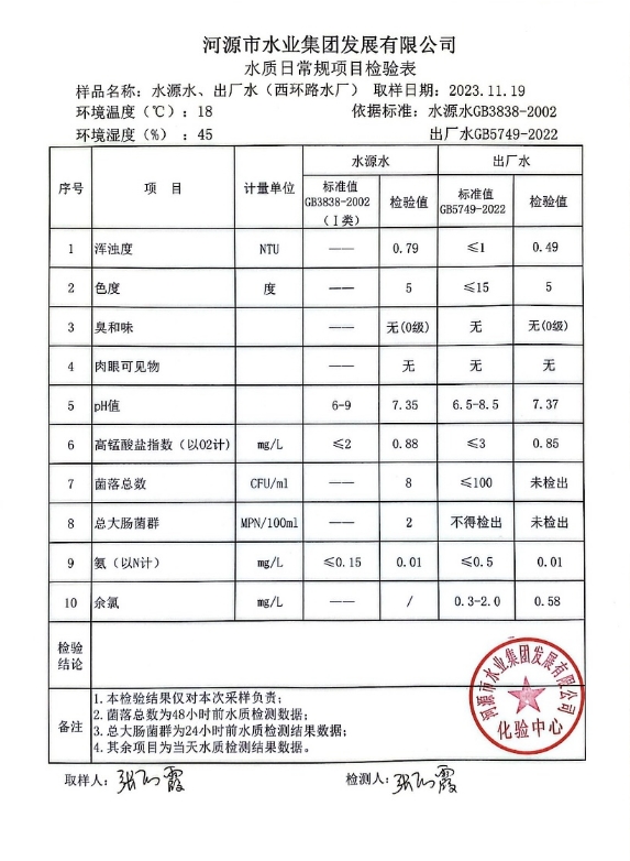 2023年11月19日水質(zhì)檢驗(yàn)報(bào)告 ???