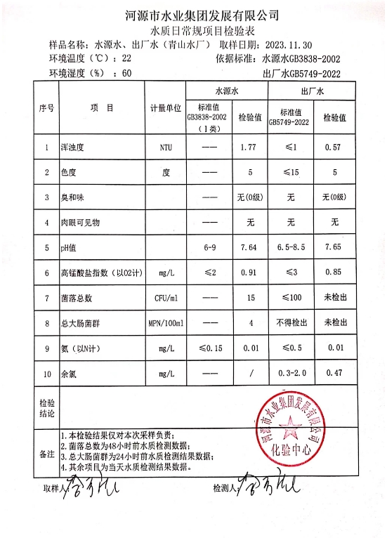 2023年11月30日水質(zhì)檢驗報告 ???