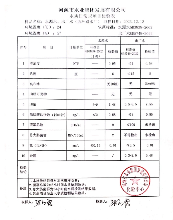 2023年12月12日水質(zhì)檢驗(yàn)報(bào)告 ???