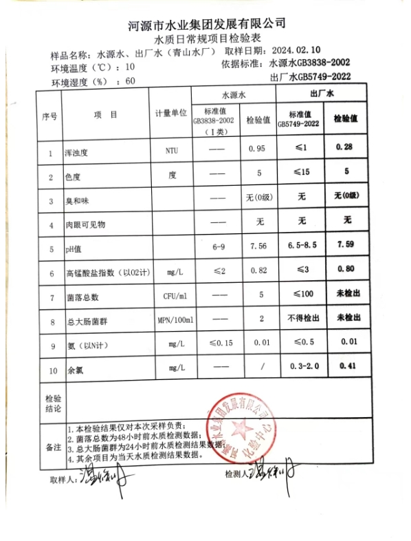 2024年2月10日水質(zhì)檢驗(yàn)報告 ???