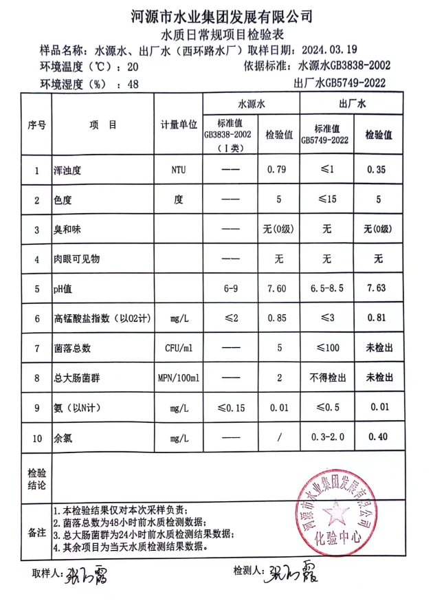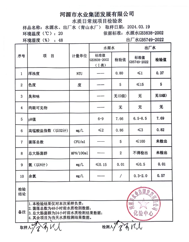 2024年3月19日水質(zhì)檢驗報告