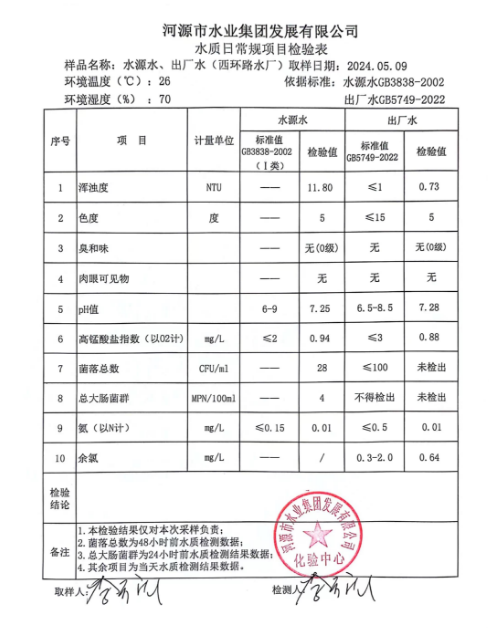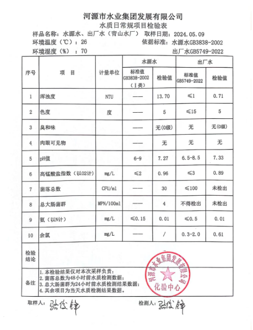 2024年5月9日水質(zhì)檢驗報告 ???