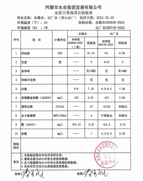 2024年5月25日水質(zhì)檢驗(yàn)報(bào)告 ???