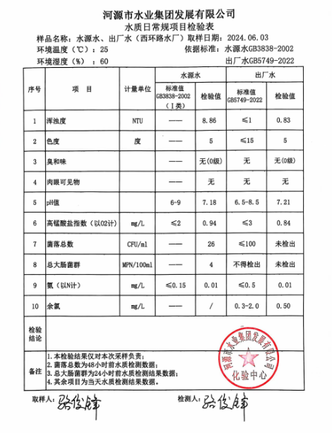 2024年6月3日水質(zhì)檢驗(yàn)報(bào)告 ???