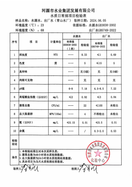 2024年6月5日水質(zhì)檢驗(yàn)報告 ???