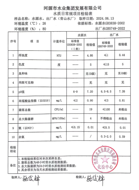 2024年6月13日水質(zhì)檢驗(yàn)報(bào)告 ???