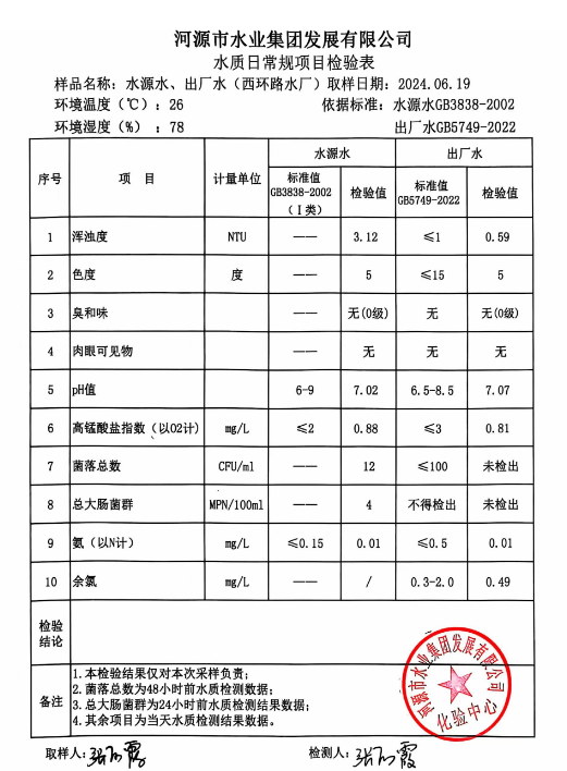 2024年6月19日水質(zhì)檢驗(yàn)報(bào)告