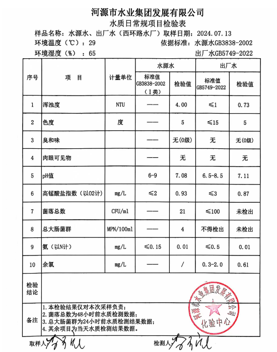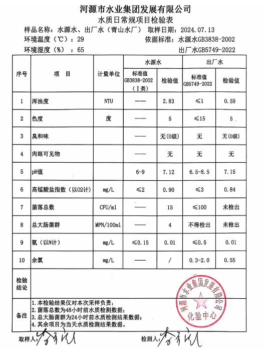 2024年7月13日水質(zhì)檢驗(yàn)報告