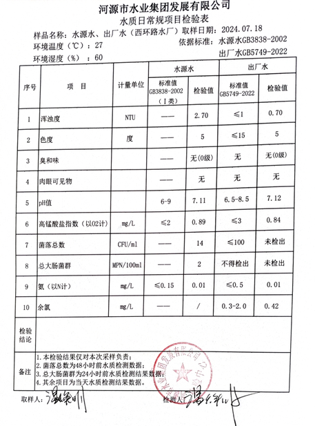 2024年7月18日水質檢驗報告