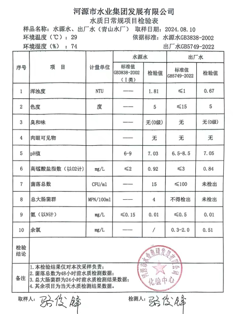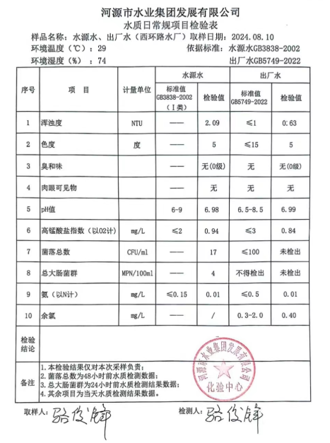 2024年8月10日水質(zhì)檢驗(yàn)報(bào)告