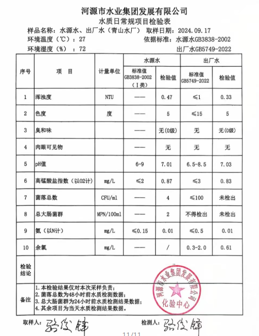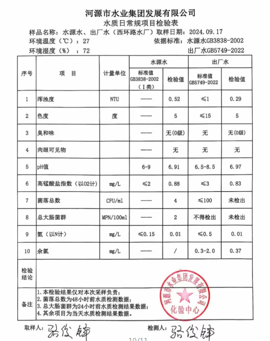 2024年9月17日水質(zhì)檢驗報告