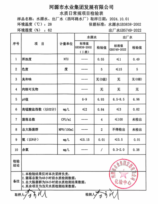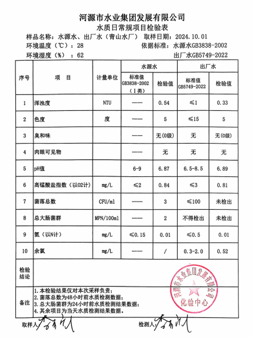 2024年10月1日水質檢驗報告