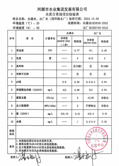 2024年10月9日水質(zhì)檢驗報告